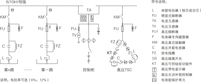 高壓TSC動態(tài)無功補償裝置由主控系統(tǒng)、光纖觸發(fā)電路、高壓晶閘管閥組、脈沖變壓器、電容器、電抗器、保護單元等組成,核心原理是通過主控系統(tǒng)對系統(tǒng)運行參數(shù)進行檢測、分析、判斷、輸出控制指令激活光纖觸發(fā)電路,再由觸發(fā)系統(tǒng)控制晶閘管閥組的快速導(dǎo)通與開斷,進而實現(xiàn)電容器組的投入和切除,使系統(tǒng)功率因數(shù)穩(wěn)定在設(shè)定值范圍內(nèi)。閥組投切采用過零投切方式,響應(yīng)時間在20ms以內(nèi),投切過程無涌流、沖擊,能快速跟蹤補償系統(tǒng)所需的無功電流。