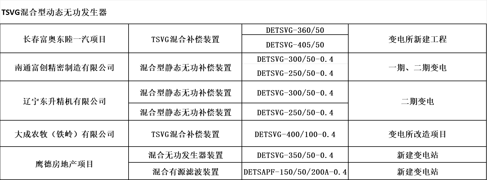 傳統(tǒng)補(bǔ)償裝置采用電容器提供無(wú)功功率,電容器組分組容量是固定的,輸出容量有階差,很難達(dá)到與系統(tǒng)無(wú)功安全平衡,而大容量的SVG成本很高,故我們公司經(jīng)過(guò)多年的實(shí)踐和摸索,研發(fā)出了TSVG,采用小容量的SVG大容量的TSC相結(jié)合,即節(jié)省了成本又達(dá)到了SVG響應(yīng)速度快、無(wú)級(jí)性補(bǔ)償?shù)男Ч瑹o(wú)功容量保證連續(xù)調(diào)節(jié)與平滑輸出。