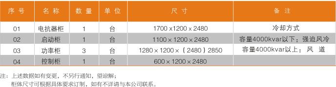 2.SVG容量為4000kvar以下冷卻方式為強迫風冷,容量大于4000kvar可采用冷卻方式為風道。